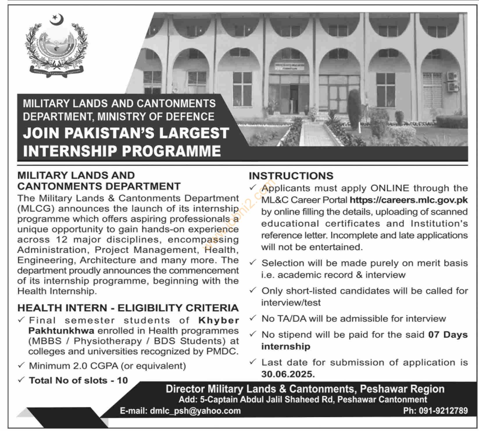 Apply For This JobThe Ministry of Defence is offering an excellent internship opportunity in Lahore, ideal for fresh graduates in MBBS or BDS....