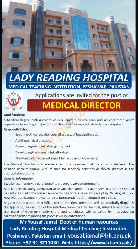 Lady Reading Hospital is one of the leading healthcare facilities in KPK, known for providing high-quality medical services to patients from across the province. Working here means being part of a team that values professionalism, patient care, and continuous improvement.