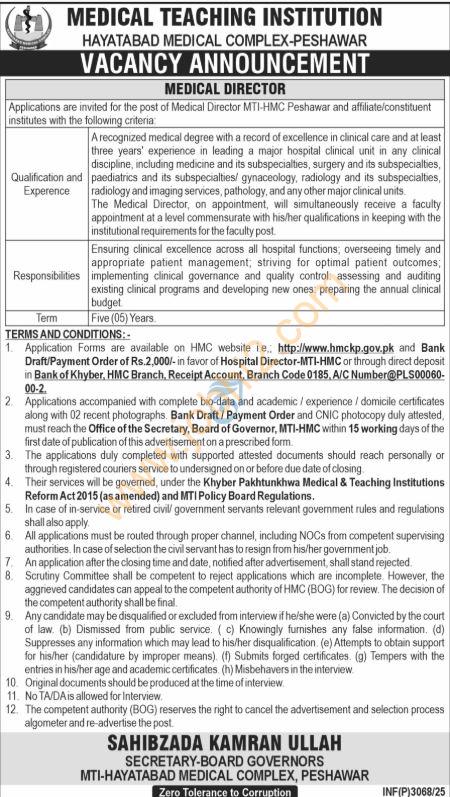If you’re looking for education jobs in Peshawar or government jobs in KPK, this is a great chance to join a well-known public sector medical institution.
