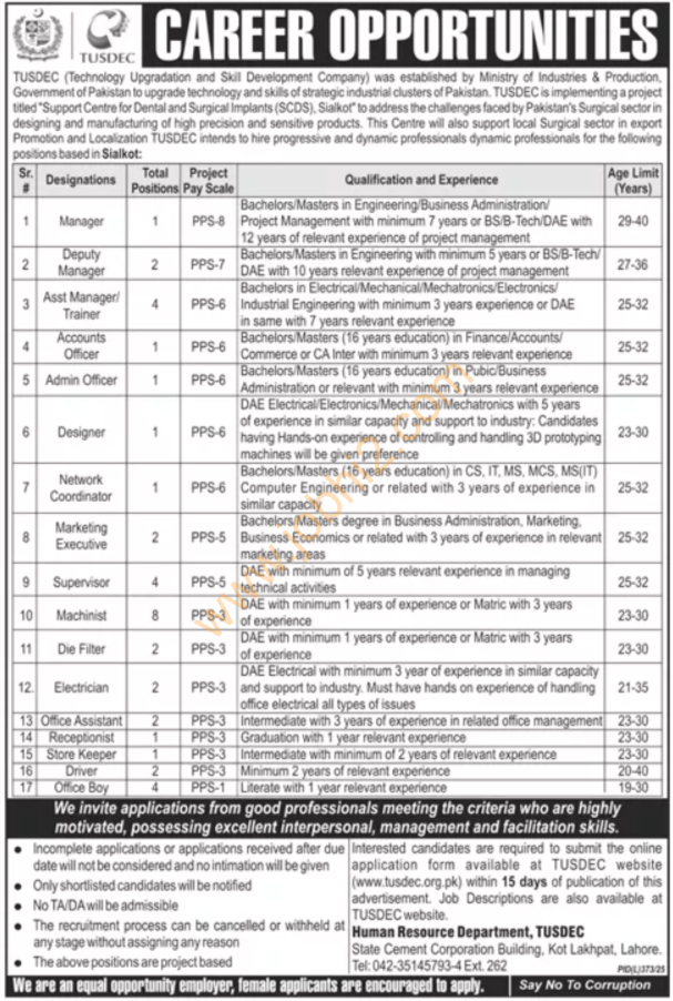 TUSDEC is a recognized government organization that works on technology improvement and skill development across Pakistan. By joining TUSDEC, candidates get the chance to work in a professional environment that offers career growth, training, and stability. These management jobs in Lahore are a great opportunity for candidates from different educational backgrounds to find a role that matches their skills.